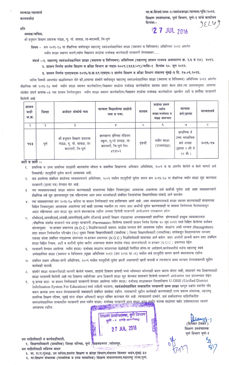 अर्ज तपशील - Dnyansagar English Medium School (27250210304)