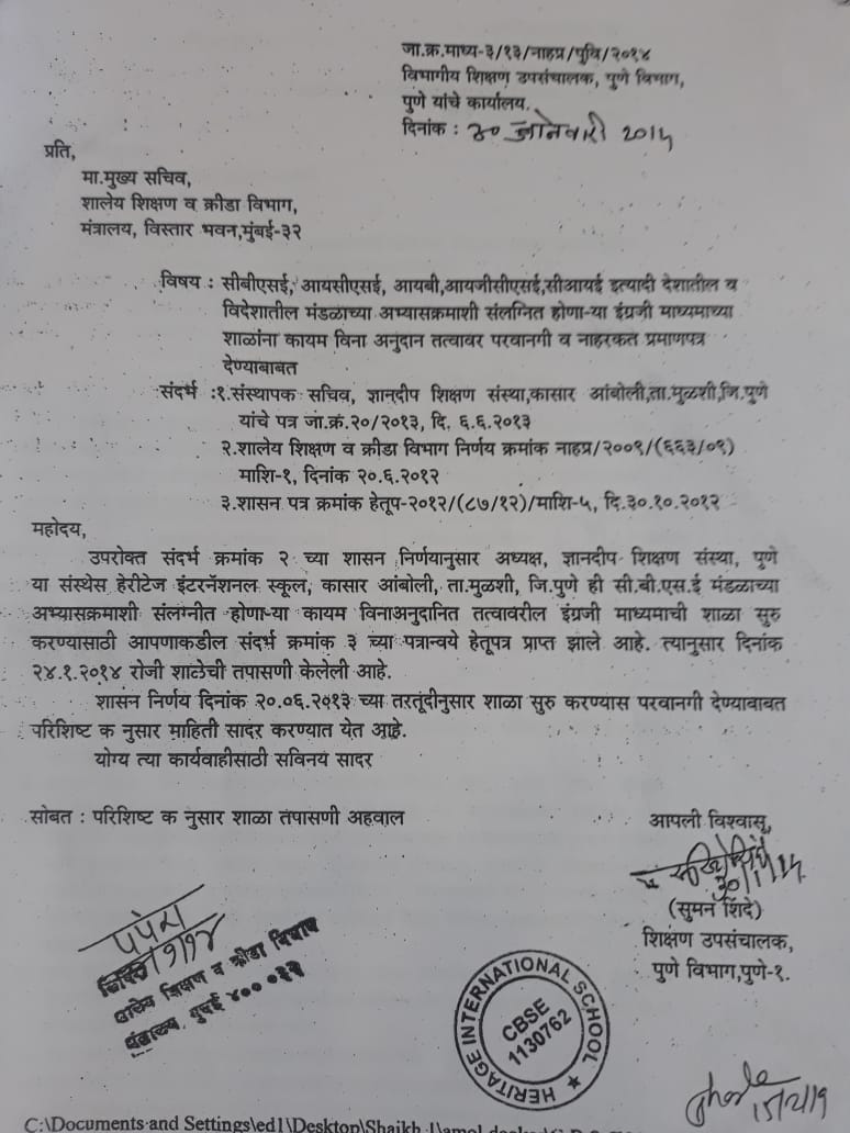 अर्ज तपशील - Heritage International School Pune (27251009322)