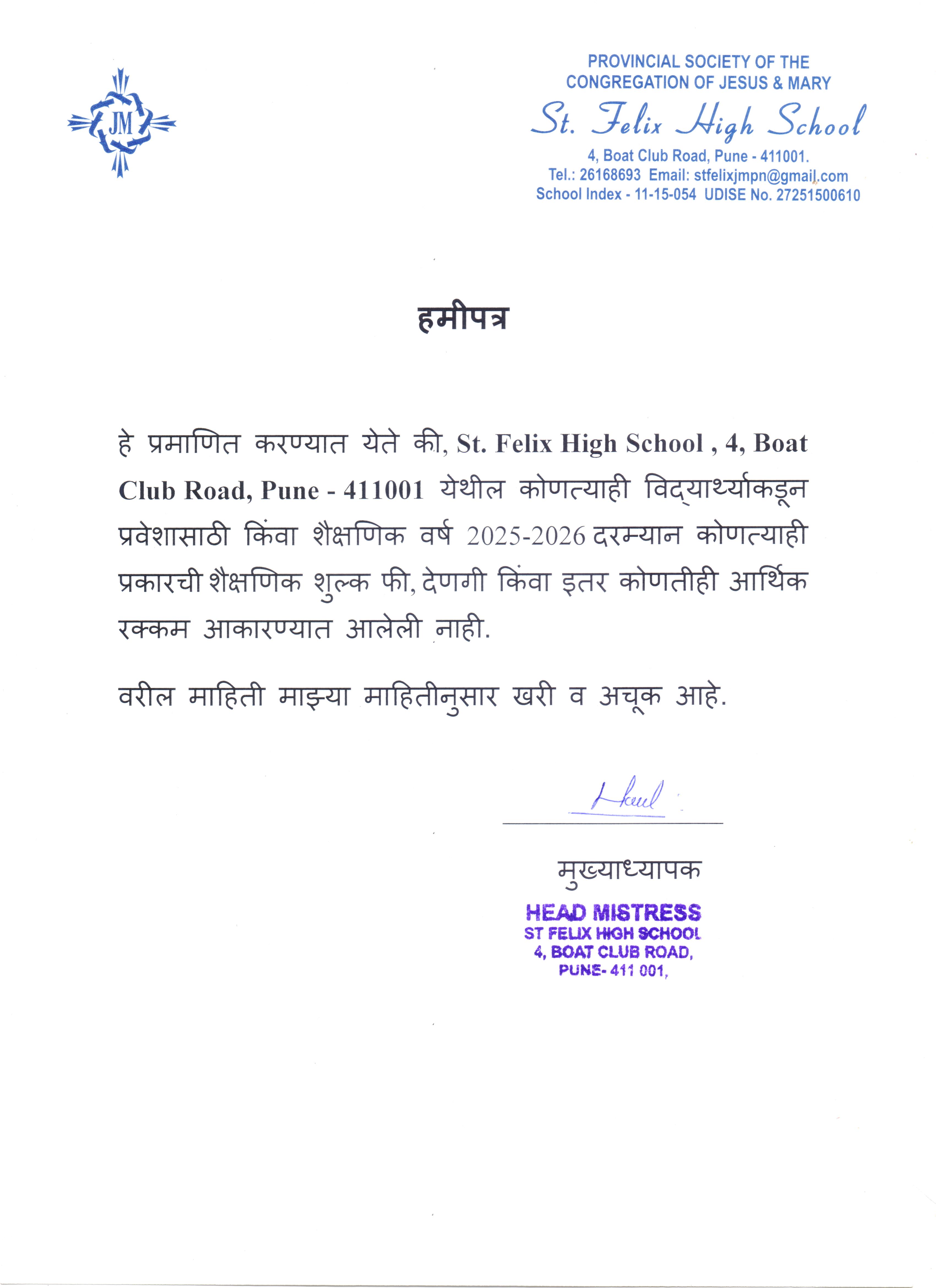 St Felix High School, Boat Club Road, Bund Garden, Sangamvadi, Pune, Maharashtra, India (Open in map) |